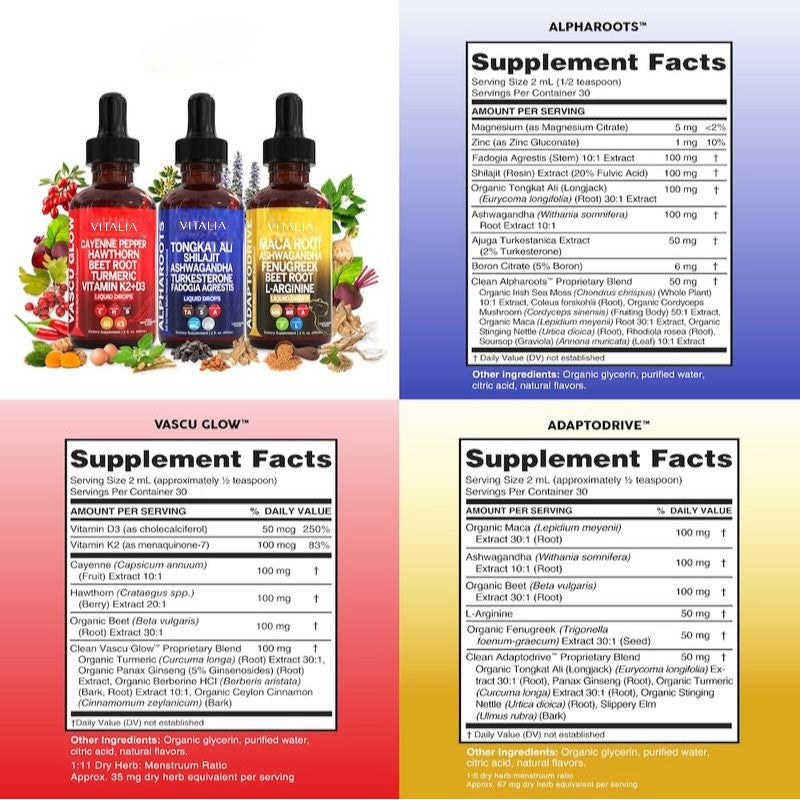 Take one full dropper daily of each, either directly or mixed into your favorite beverage.