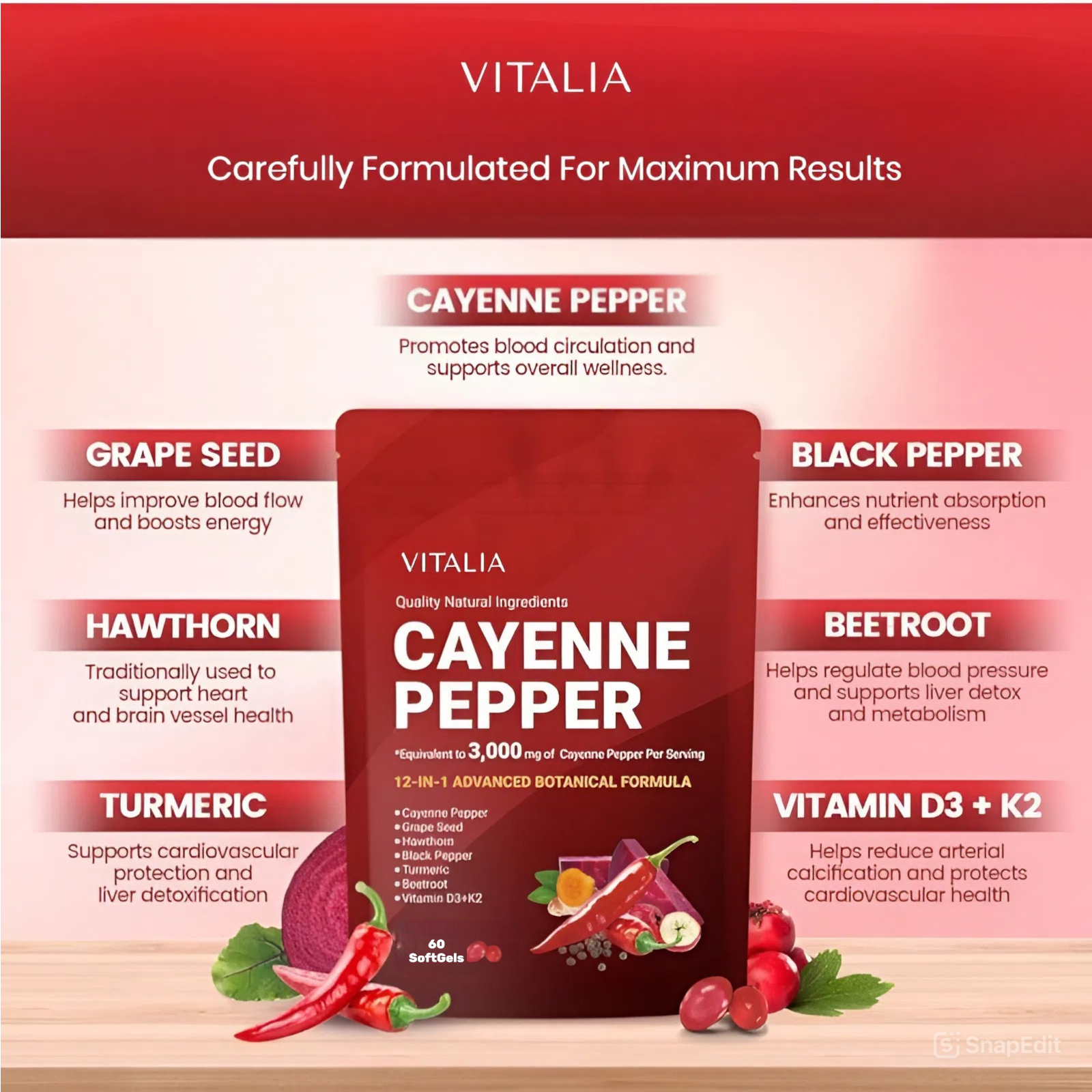 True energy doesn’t come from coffee or sugar — it comes from clean, steady circulation. These Cayenne Capsules restore natural flow so your body can create its own lasting vitality. You’ll notice clearer focus, smoother stamina, and consistent energy with zero crash. Just two capsules a day and you’ll feel your body come back to life.